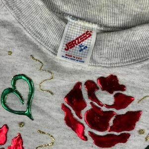 Jerzees Vintage Metallic Rose Puff PaintSweatshirt Lovecore