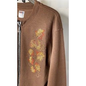Jerzees Woman Rhinestones Fall Leaves Jacket & Shirt Size M