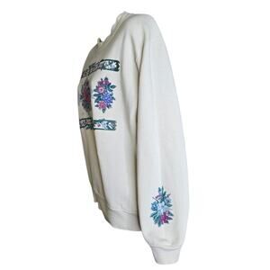 Jerzees Womens Floral Sweatshirt Size Small Retro Sleeve Accent Grandmacore