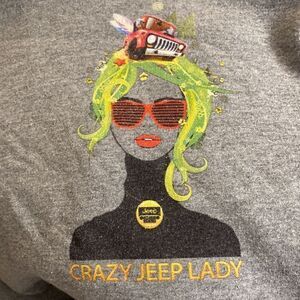 Jerzees Gray “Crazy Jeep Lady” Hooded Sweatshirt, size smal