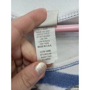 Jess And Jane Womens Top XL Blue White Striped Anchor Embellished Nautical