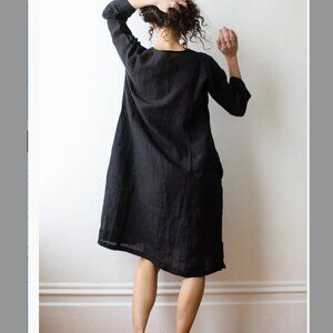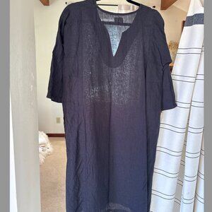 Jess Brown Caftan Dress Cafe Length in Ink Handkerchief Linen Size 1 (S/M)