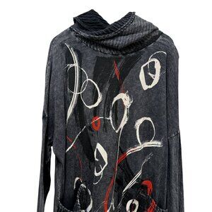 Jess & Jane Abstract Top Plus Size 1X Gray Cowl Neck Tunic Tee Pockets Turtlenec