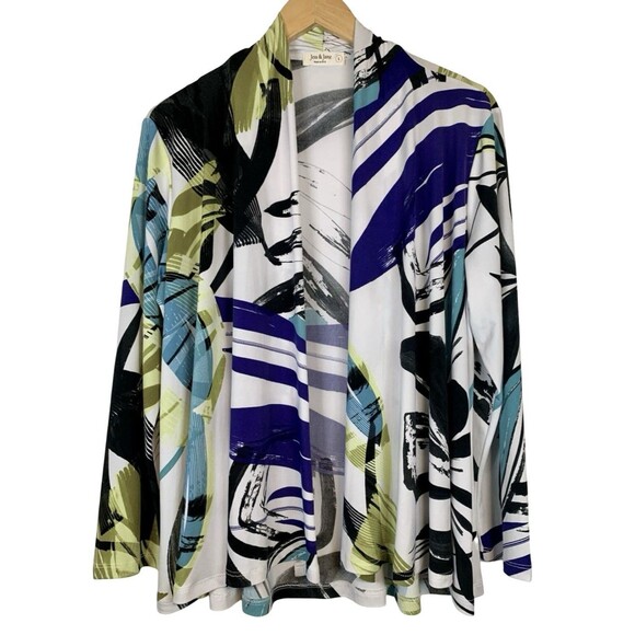 Jess & Jane Artsy Watercolor Multi Colored Artsy Open Front Cardigan Large USA
