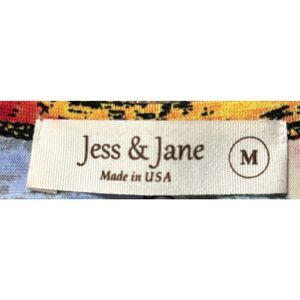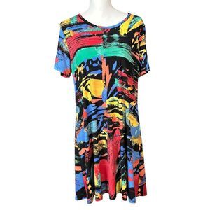 Jess & Jane Aspen Swing Dress Size Medium Abstract Colorful Red Blue Artsy Flowy