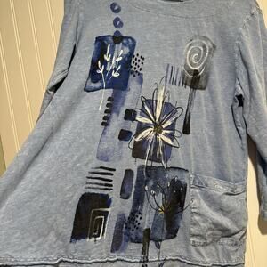 Jess Jane Blue Lily Mineral Wash Pocket Top Size Small