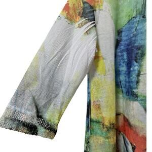 Jess & Jane Colorful Abstract Tunic Top Size M Lagenlook Pockets Made in USA