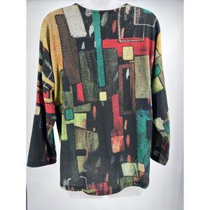 Jess & Jane "Cubes" Zipper V-Neck Top Size Small