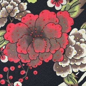 Jess & Jane Dark Floral Zebra Print Beaded Embellished Bedazzled Top Romantic
