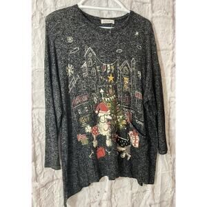 Jess & Jane Dogs Merry Christmas Tunic Top Knit Multicolor Medium Women’s