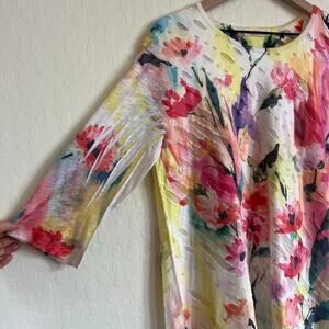 Jess & Jane Florafest Double Knit Asymmetrical Tunic Blouse XL Colorful Floral