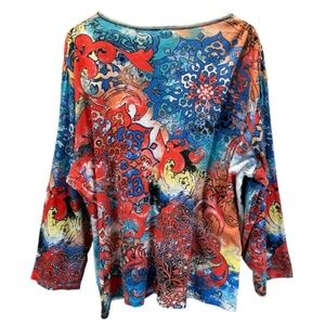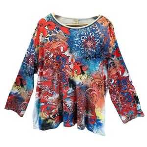 Jess & Jane Plus Tee Top Orion Women's 3X Boho Artsy USA Made Colorful Coastal