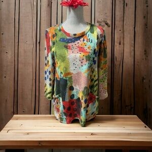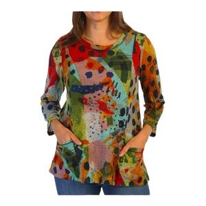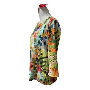 Jess & Jane Pop Art Multicolor Colorblock Pocket Asymmetrical Hem Tunic Sz S USA