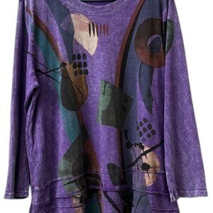 Jess & Jane Purple Mineral Wash Tunic Abstract Geo Print 100% Cotton Size 1X