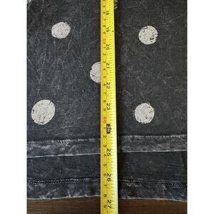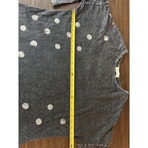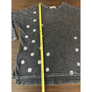 Style: Womens casual tunic shirt with mineral-wash black color and scattered white polka dot print.