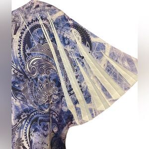 Jess & Jane Sz S Purple Abstract Pleated Bat Wing Sleeves Flowy Relaxed Fit Top