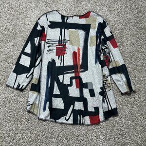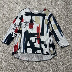 Jess & Jane Womens Sz Small Abstract Graphic Print 3/4 Sleeve Top S Made In USA