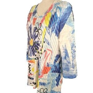 Jess & Jane Womens XL Pleated Abstract Print V-Neck Tunic Top