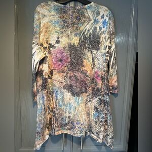 Stylish multicolor top by Jess & Jane. Features a unique pattern with shades of brown, green, blue, purple and pink. It’s a beautiful top! Size XL. Make me an offer!