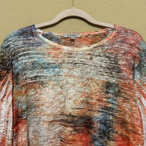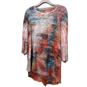 Jess & Janes Tunic Top Womens Small Multicolor Abstract Print Art to Wear Boho