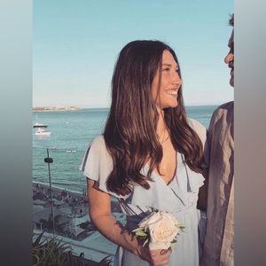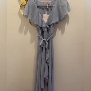 Darling bridesmaids dress in steel blue chiffon. Generally wear a size XS-S but sized down and it fit great! No stains, holes, or other problems. Like new. Willing to negotiate price.