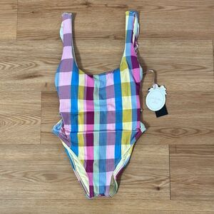 Jess Southern X Gianni Bini Women's Plaid Scoop One Piece Bathing Suit Small New