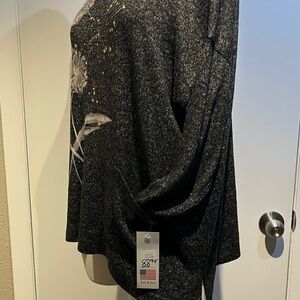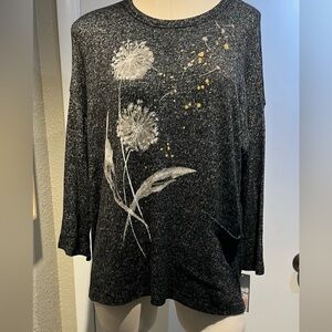 Jess and Jane blouse w pocket grey heathered fabric NWT dressy top