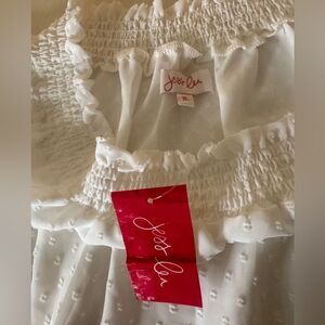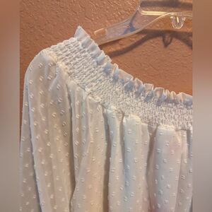 NWT: tags attached Beautiful white blouse Elastic neck scoop Belle mid sleeves Lined inside Size XL Smoke free home