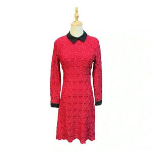 JessaKae Collared Long Sleeve Red Crochet/Lace Dress Size M