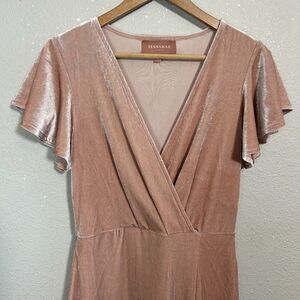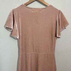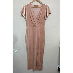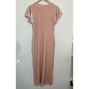 JessaKae Everly Velvet Maxi Dress S Pink Blush Fitted Short Sleeve V Neck