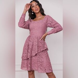 JessaKae Laurel Lace Midi Dress Mauve| Romantic Wedding Guest Look | Size Large
