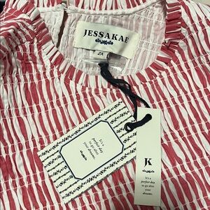 Chic midi dress with light red and white stripes. Sleeveless smocked design that can fit any bust size. Perfect for casual outings. Ordered 2 sizes and only needed to keep 1. Brand new with all tags still attached, never worn!