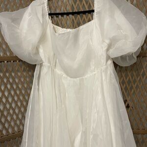 White JessaKae Wendy Dress. Size 5X. Has some minor damage to the seams on the bodice and on the skirt as seen in the photos.