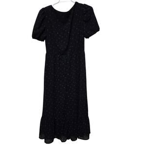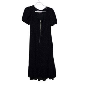 Jessakae Black Blue Floral Midi Dress Women's Small Ruffle Hem Short Sleeve Zip