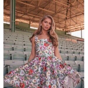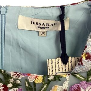 Jessakae Fit Flare Dress Women 3X Blue Multi Ava Floral Embroidery Sleeveles NEW