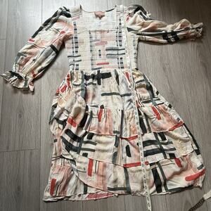 This is a boho-style dress with a playful, artistic design. Here are some details about it: