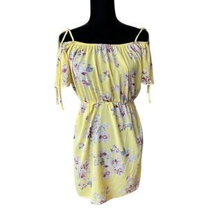 Jesse & J Womens Dress Size Large Yellow Floral Off Shoulder Short Juniors