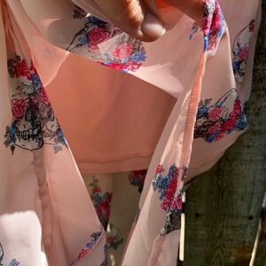 Jesse & J skirt elastic waist maxi sheer skull top layer and under layer above the knees. Size is medium. Measurements are done flat and are approximate.