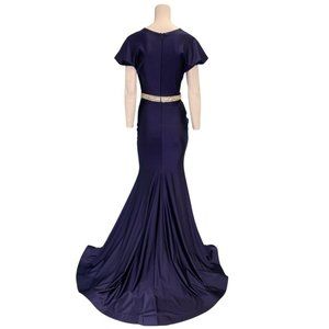 Jessica Angel 879 Short Sleeve Rhinestone Trimmed Gown Navy Blue Size XS NWT