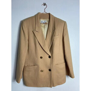 Jessica Ash Womens Double Breasted Long Sleeve Blazer Coat Cream Tan Sz 14