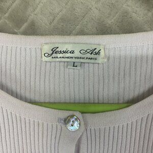 Jessica Ash Womens L Top White Cardigan Mother of Pearl Buttons Rib Knit Fitted