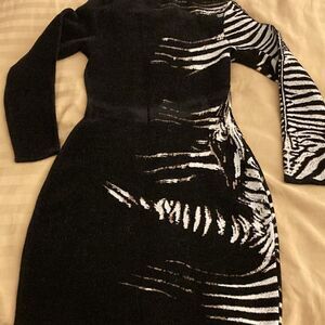 Jessica Bara Elora Long Sleeve Mock Neck Zebra Body-con Mini Dress. Size Small.