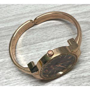 Jessica Carlyle Watch Cuff Bracelet Rose Gold Tone Quartz Rhinestones