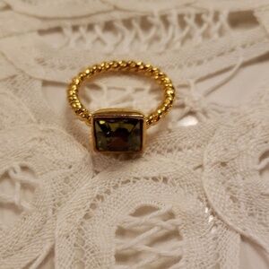 Size 6 ring. 18k gold plated brass with genuine green Swarovski crystal. Rope style band. Beautiful Ring!!!
