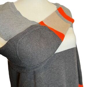 Jessica H Sweater Dress Striped Gray, Khaki, Orange Petite L. Great condition. Fun elbow patches. See photos for all details and measurements. Check out my closet for more items to add for only one shipping fee.