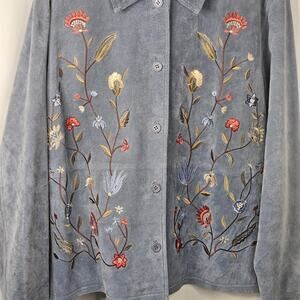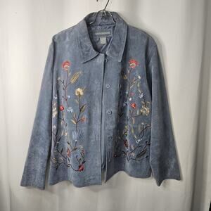 Jessica Holbrook Jacket Womens 1X Blue Suede Leather Floral Embroidered Artsy