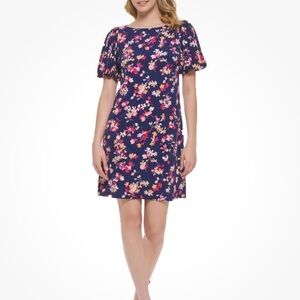 Jessica Howard 6 Petite Blue Floral Puff Sleeve Dress
