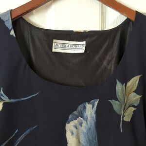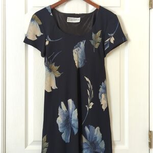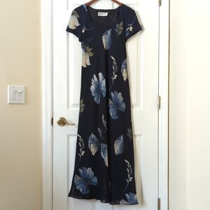 Jessica Howard 80's Vintage Floral Printed Short Sleeve Sheath Maxi Dress Navy 6
