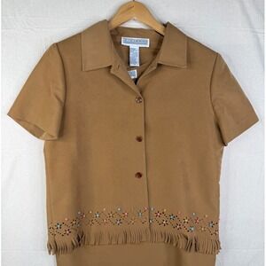 Jessica Howard Beaded& Fringed Western 2 Piece Dress/Top Set size 12 Tan