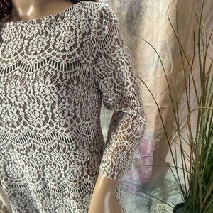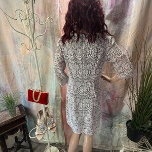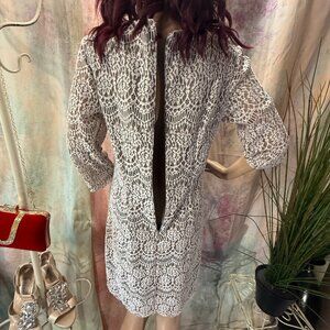 πJessica Howard Beautiful Lace Knee Length 3/4 Sleeve Shift Dress w Blink
